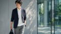 男性なら、ネイビージャケットに白シャツ、グレーのスラックス、黒またはダークブラウンの革靴を合わせると堅実です。この組み合わせは、金融やメーカーのような堅めの業界でも大きく外しにくく、ITやWeb系のような柔らかい社風でも堅苦しすぎません。