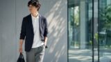また、20代は体型変化が比較的少ない時期ではありますが、姿勢や筋肉のつき方によってジャケットの似合い方は大きく変わります。肩が華奢な方は、肩の落ちるデザインだと服に着られやすくなりますし、下半身にボリュームが出やすい方は、細身すぎるパンツよりも適度にゆとりのあるテーパードのほうがきれいに見えます。自分の体型に対して無理のないシルエットを選ぶことが、結果として最も洗練された印象につながります。