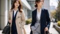 私は入社式では、主役はあくまでスーツであり、コートはその印象を壊さず支える脇役であるべきだと考えています。だからこそ、襟の形が端正で、色が落ち着き、ボタンやベルトが過度に主張しないものが向いています。